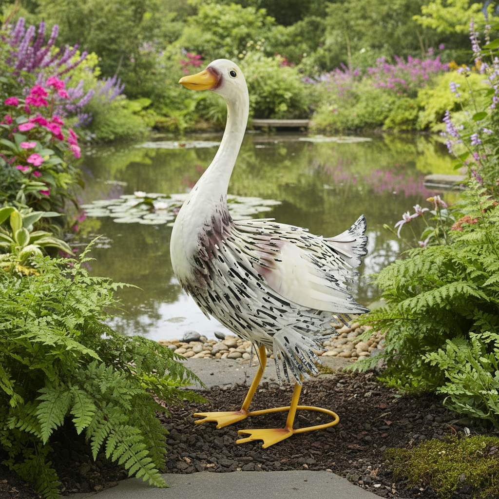 Darling Daisy Duck radiates rustic charm, bringing a gentle country vibe to any outdoor setting. Her soft pastel tones lend a warm, welcoming feel that’s perfect for garden nooks or patio displays.