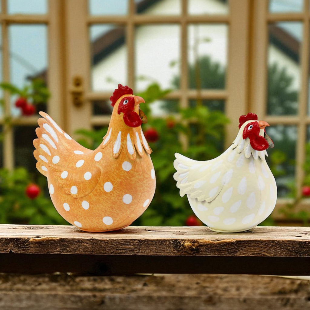 These plump, seated hens, available in cheerful orange and creamy white are bursting with personality. Their rounded forms and endearing expressions make them an irresistible addition to any space, destined to win hearts wherever they perch.