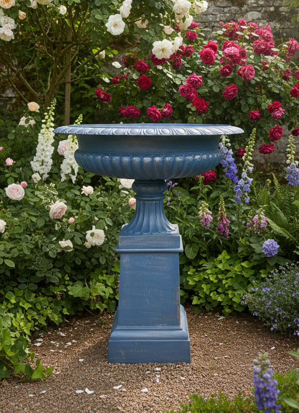 PROVINCE TOULOUSE CAST IRON URN AND BASE SET - ANTIQUE BLUE