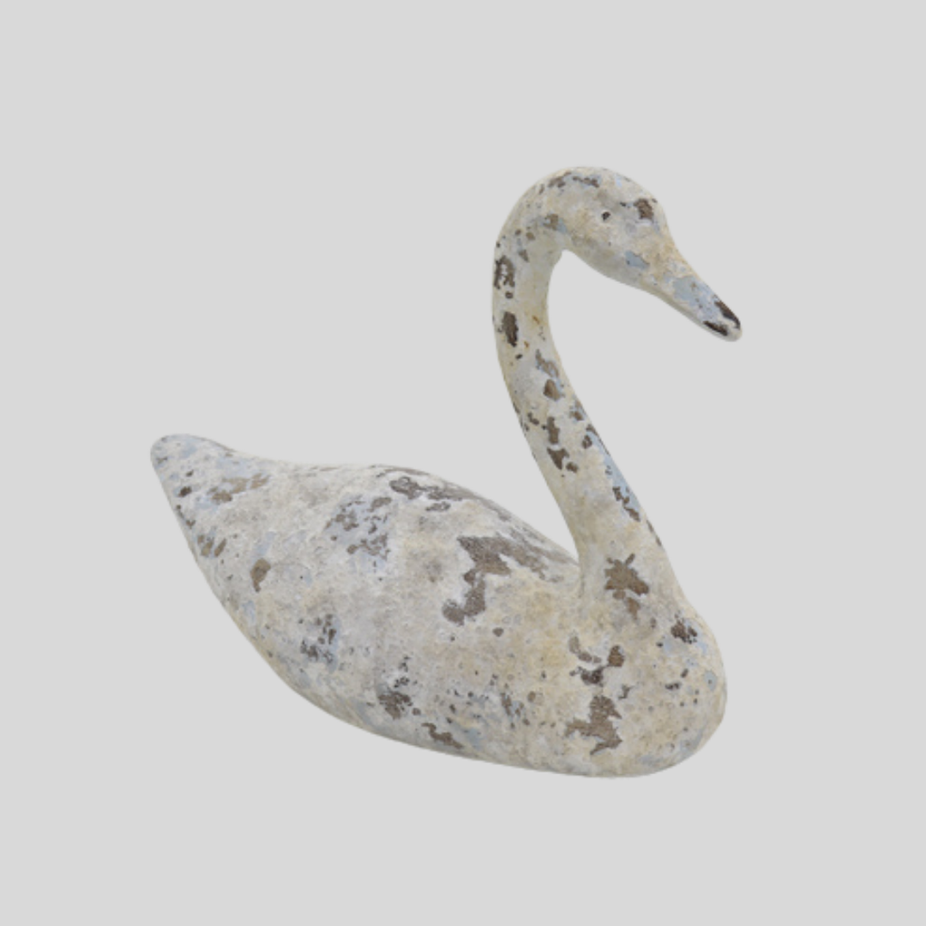 This beautifully weathered swan, adorned in speckled shades of white, brown, and grey, exudes timeless charm. Its graceful design makes it a striking addition to both indoor and outdoor spaces, perfectly complementing any rustic or coastal-inspired décor.