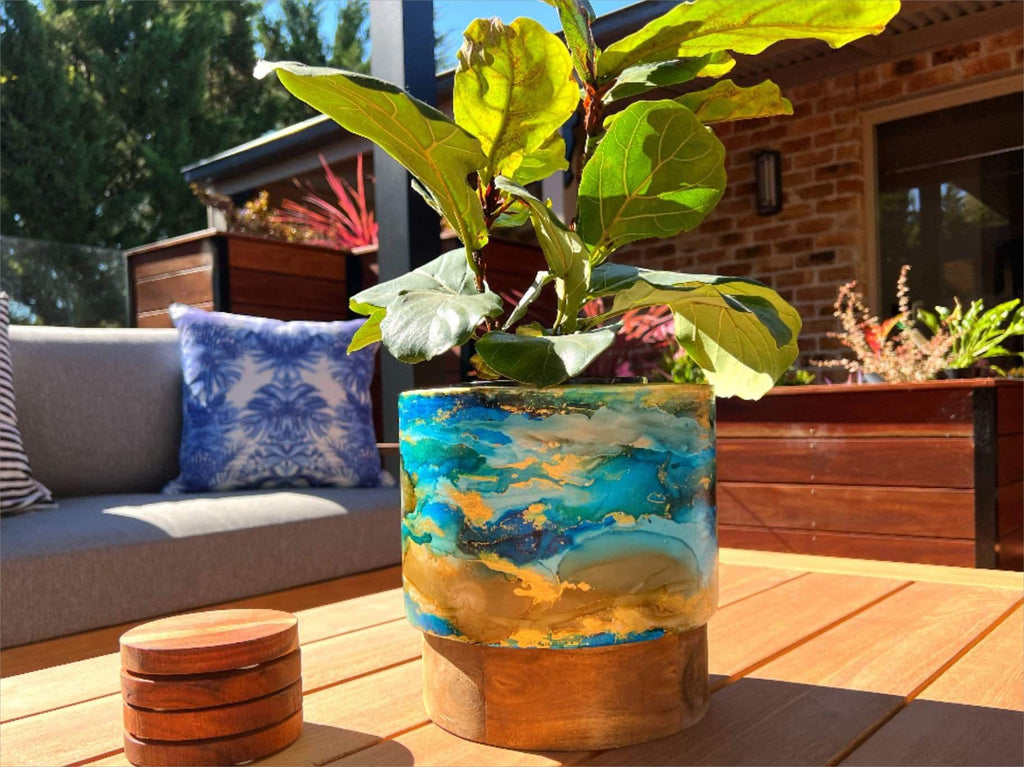 ARTISAN DESIGNED - CARIBBEAN JEWEL HEIST PLANTER - TIMBER BASE