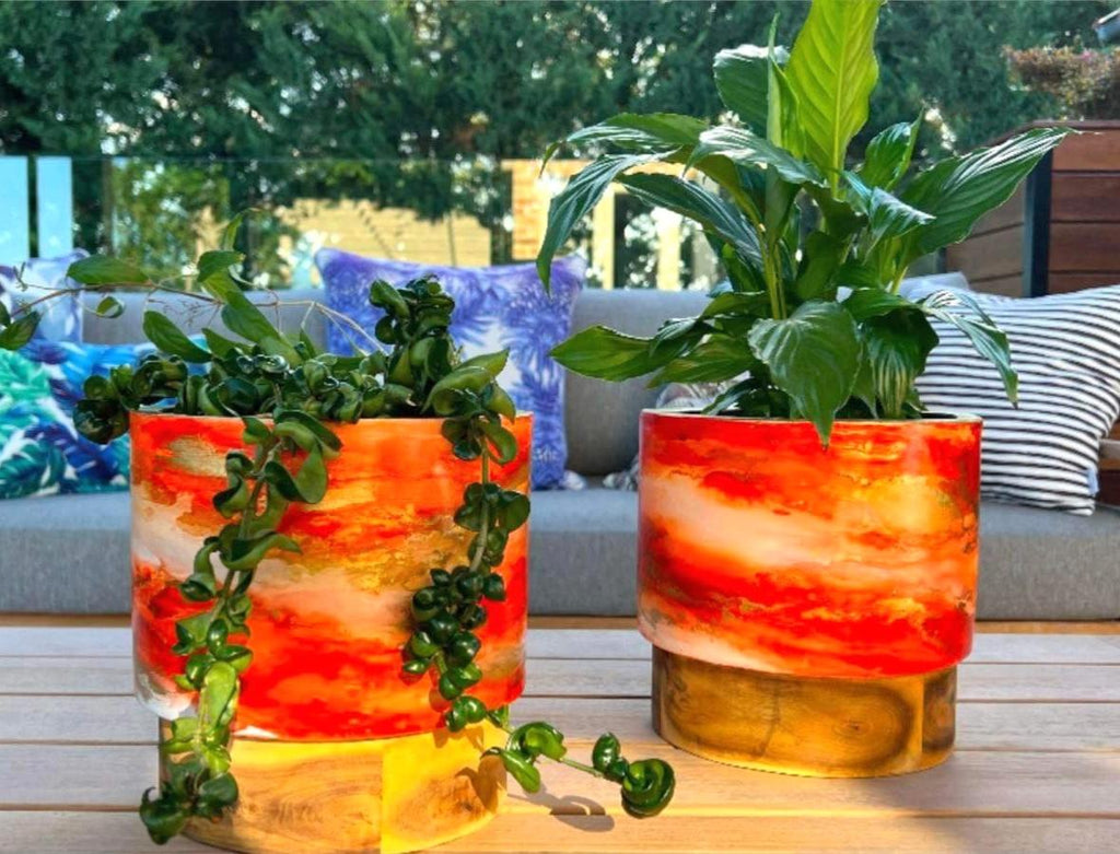 ARTISAN DESIGNED - MADAGASCAR ORANGE PLANTER TIMBER BASE
