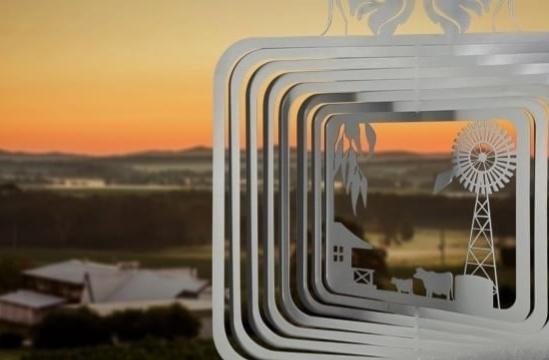 Our latest Stainless Steel Country Wind Spinner is a beautiful new design featuring a lovely Australian country farm scene.