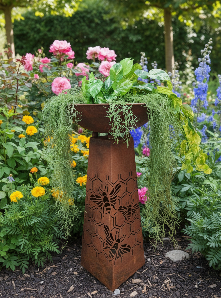Perfect for gardeners, nature lovers, and anyone who appreciates handcrafted metal art, this multifunctional piece adds warmth, character, and a touch of wild beauty to any outdoor setting.