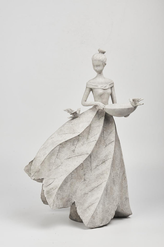 Resin Isabella Figure in Leaf Dress & Bird Feeder