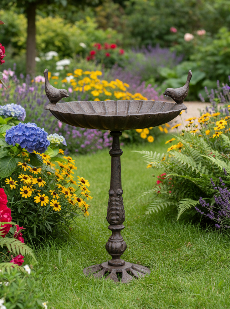 BIRD FRIENDS - CAST IRON BIRD BATH / FEEDER