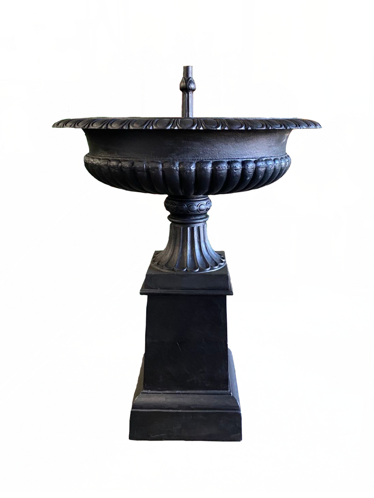 Decorative Self Contained Cast Iron Toulouse Fountain. Price includes pump with 3m cord, pump housing, spout and waterproofing. Just add water & plug it in.