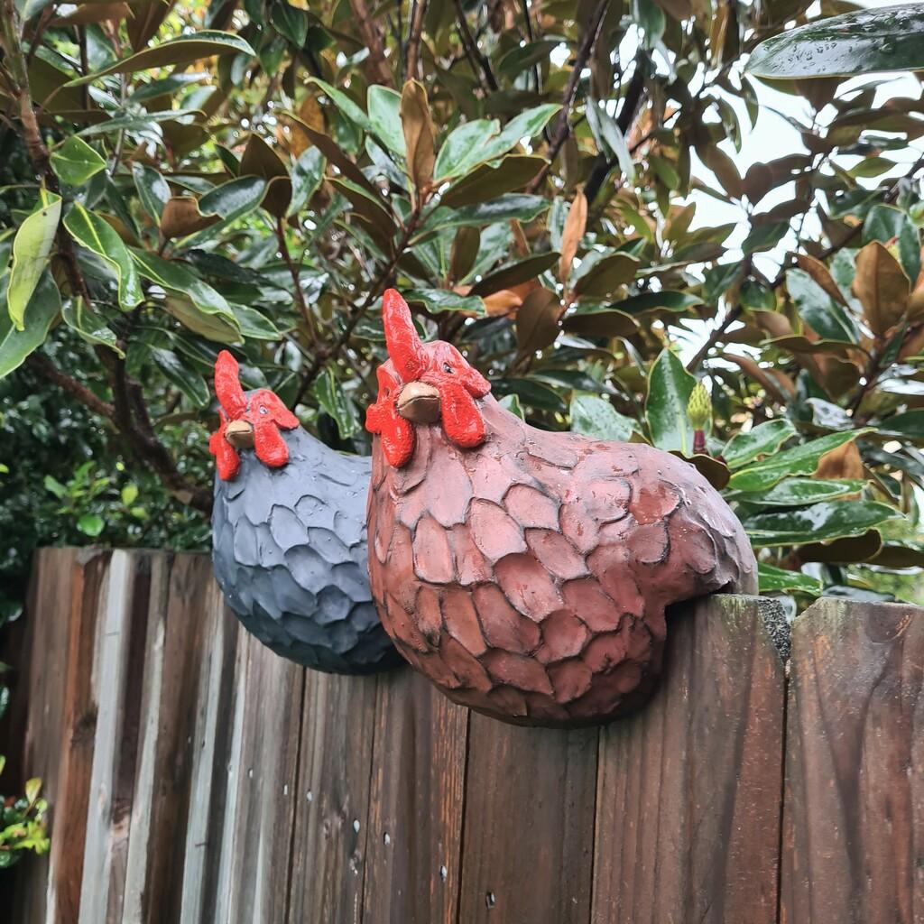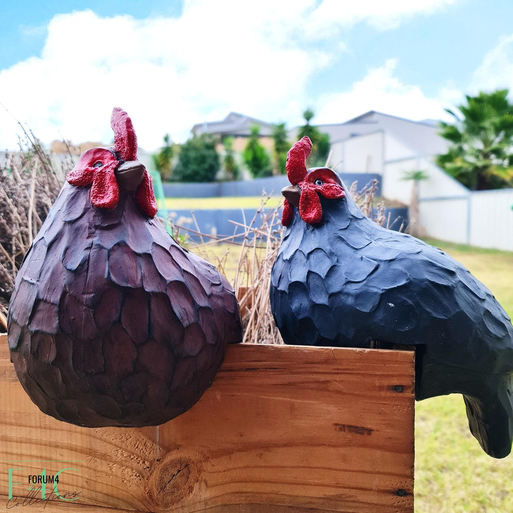 Polyresin with a slot underneath to sit on a fence, box or railing.