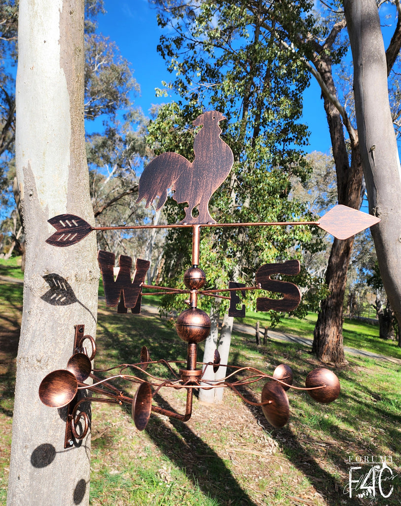 45*60*70, Weather vane that mounts on the wall. Powder coated with a brushed bronze finish