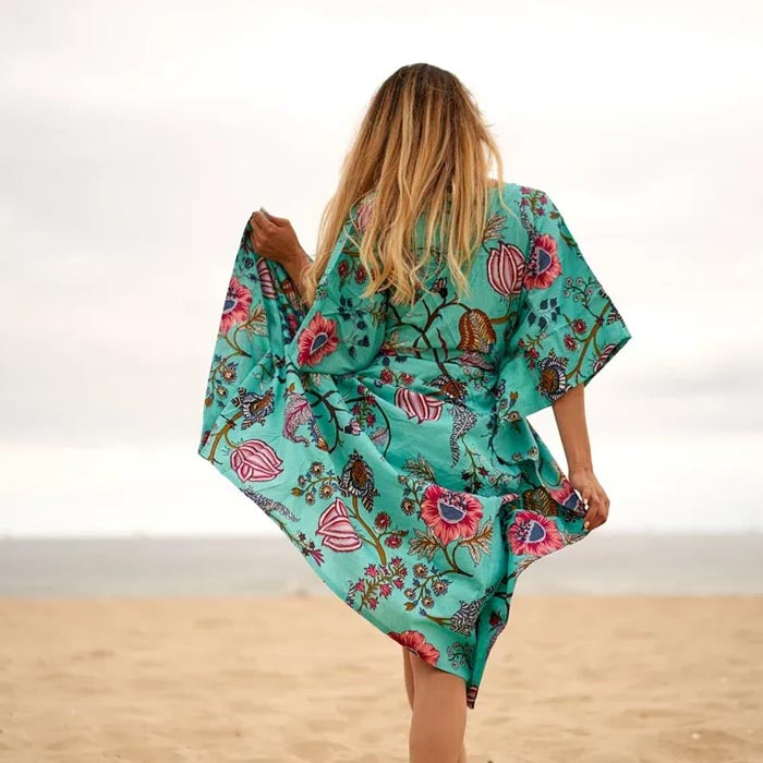 A beautiful Frida Kahlo-inspired kaftan for a super price. Perfect as a kimono, robe, or kaftan. Made from super comfy lightweight cotton cambric so treat yourself to ultimate comfort whether you are simply winding up at night, getting ready for the morning, or just cozying up in your lounge to binge-watch a movie on Netflix.