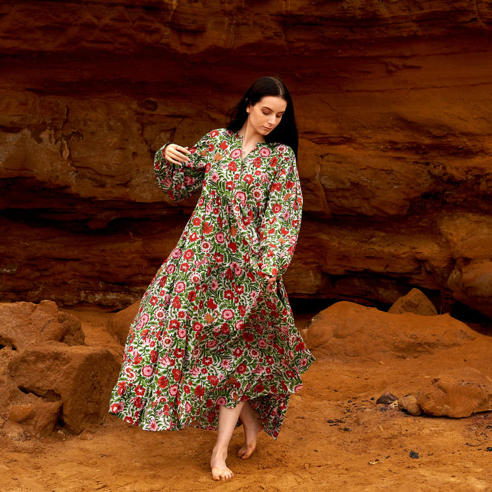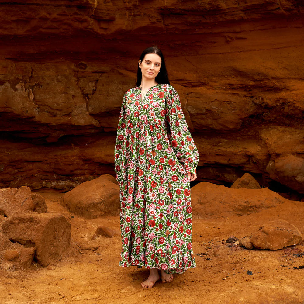 COTTON LONG SLEEVE MAXI DRESS - RUBY RAVISH