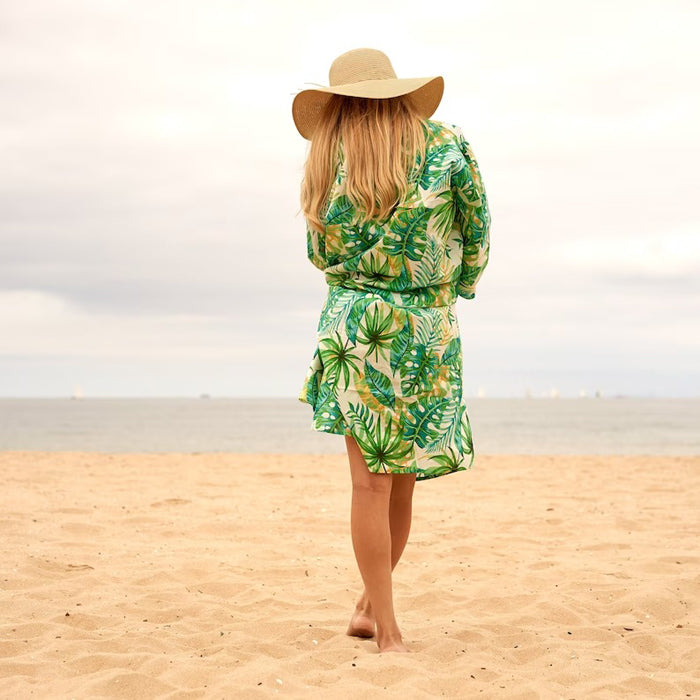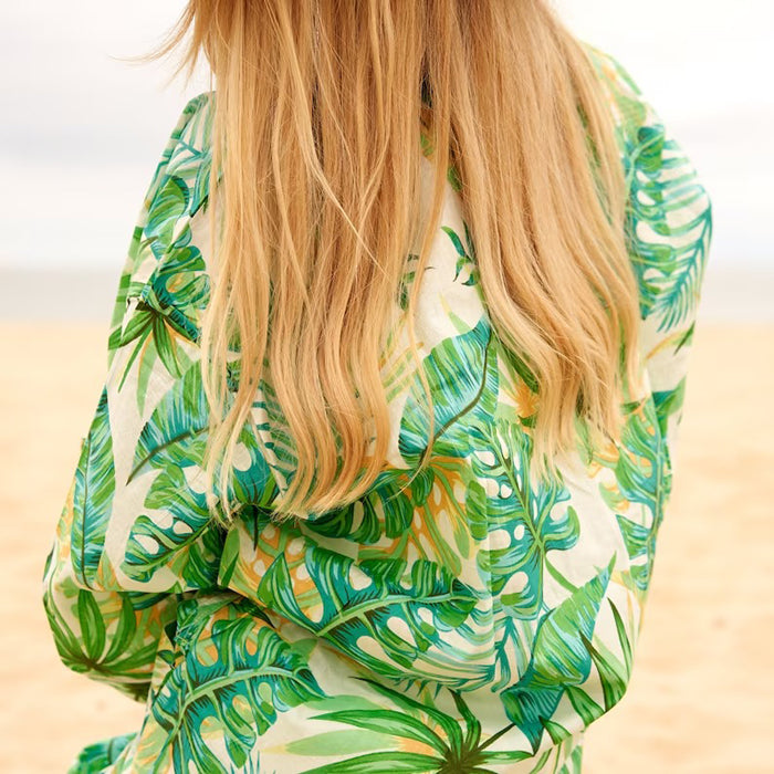 Cotton Kimono Bathrobe Cardigan Dressing Gown - Tropical Leaves