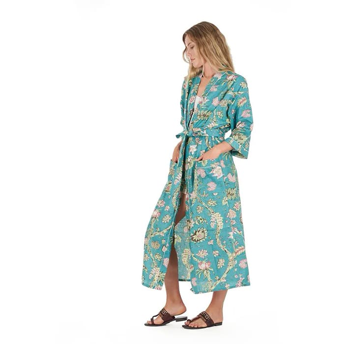 Cotton Kimono Bathrobe Cardigan Dressing - blue on blue