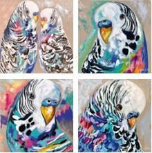 Colourful Budgies 4pc Coaster set - Artist Lab