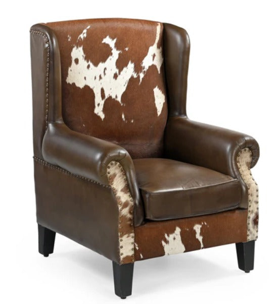 HANDMADE JOELENE COWHIDE LEATHER HIGH BACK ARM CHAIR