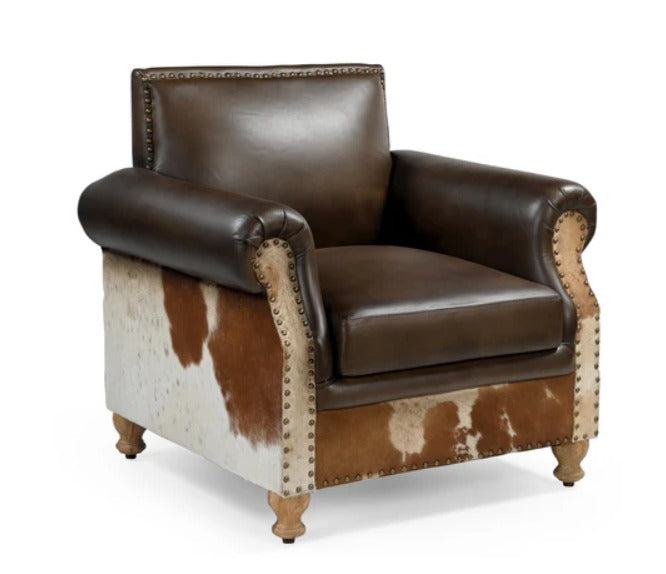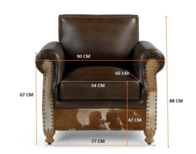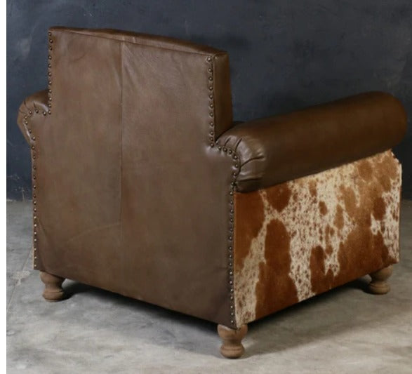 RIVERINA HAND MADE COWHIDE AND GENUINE LEATHER ARM CHAIR