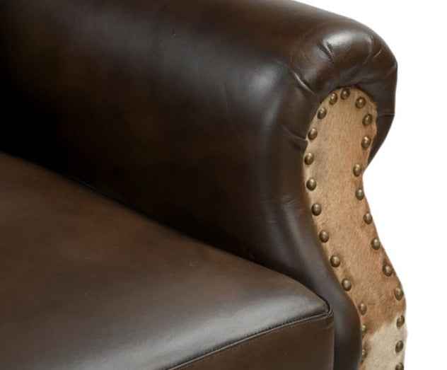 Experience the luxurious comfort and sophisticated style of our RIVERINA HAND MADE COWHIDE AND GENUINE LEATHER ARM CHAIR. Each chair is meticulously crafted by hand, ensuring the highest quality and attention to detail. Embrace the natural beauty of premium cowhide and genuine leather as you relax and unwind in this timeless piece of furniture.
