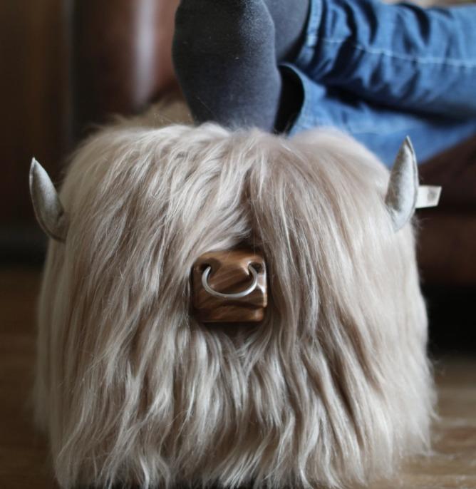 HIGHLAND BULL GENUINE FOOT STOOL - BUFF