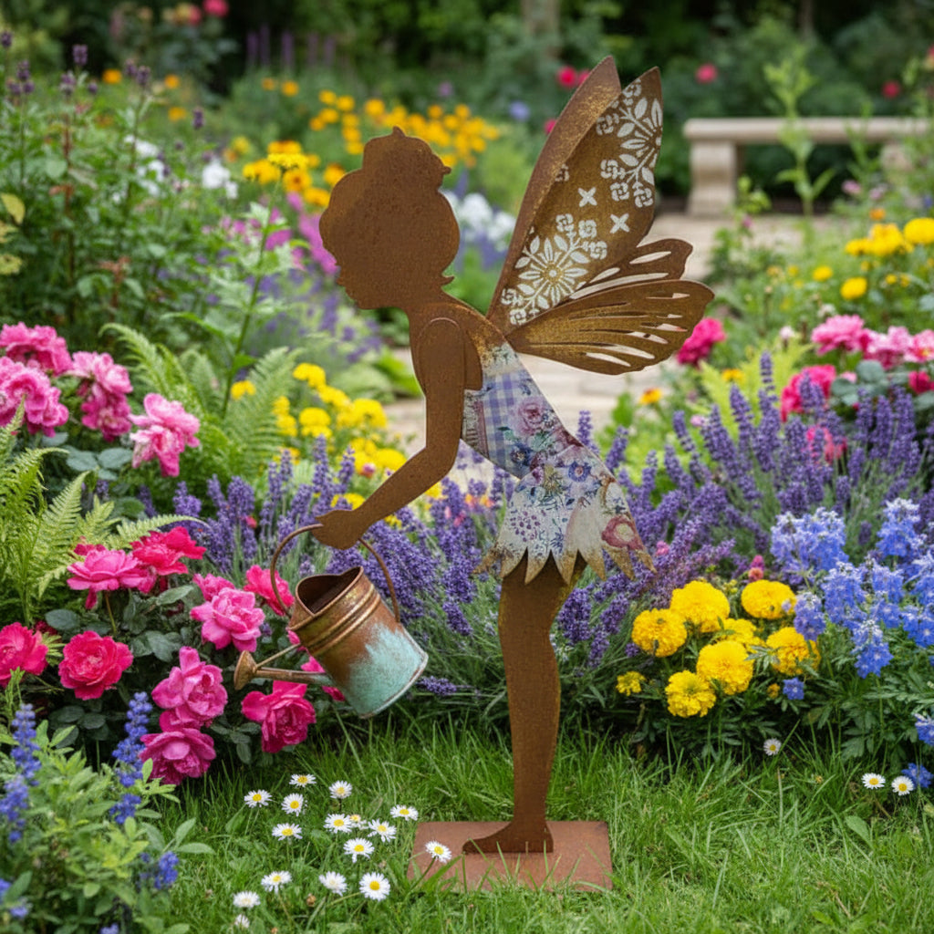 RUSTIC FAIRY WITH WATERING CAN ON BASE