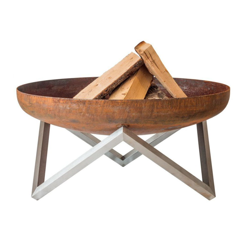 This fire pit is also available with stainless steel barbecue grill grate. It comes with wooden handles and can be positioned in 6 different heights.