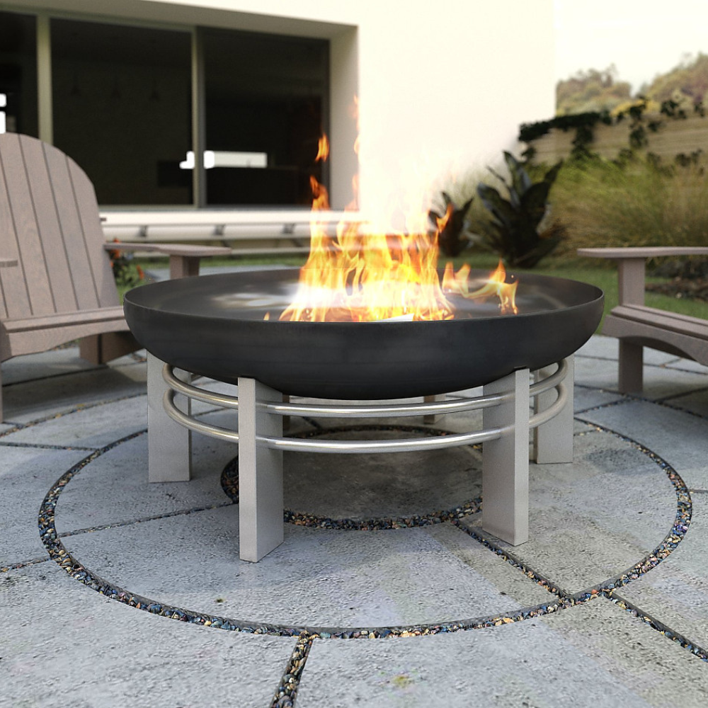Contemporary design, high quality, hand-finished solid steel modern fire pit. Its features will complement many outdoor decors, both in winter and summer. This modern fire is suitable for different landscape settings and decorative choices.