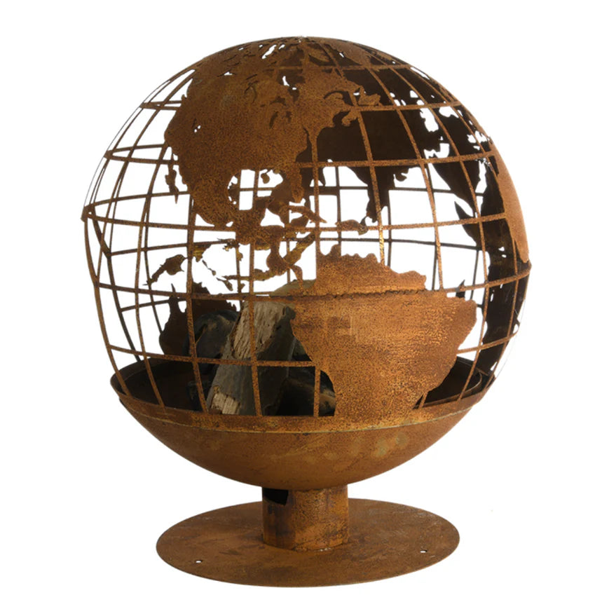 Fire Ball Pre - Rusted Laser Cut Fire Pit - World Globe