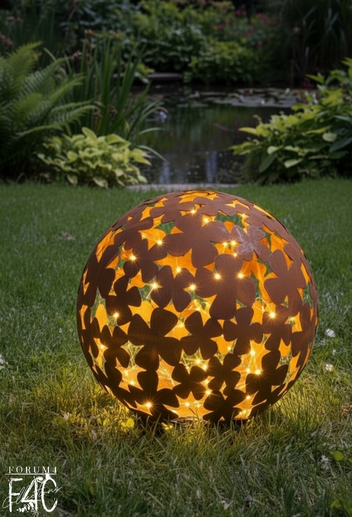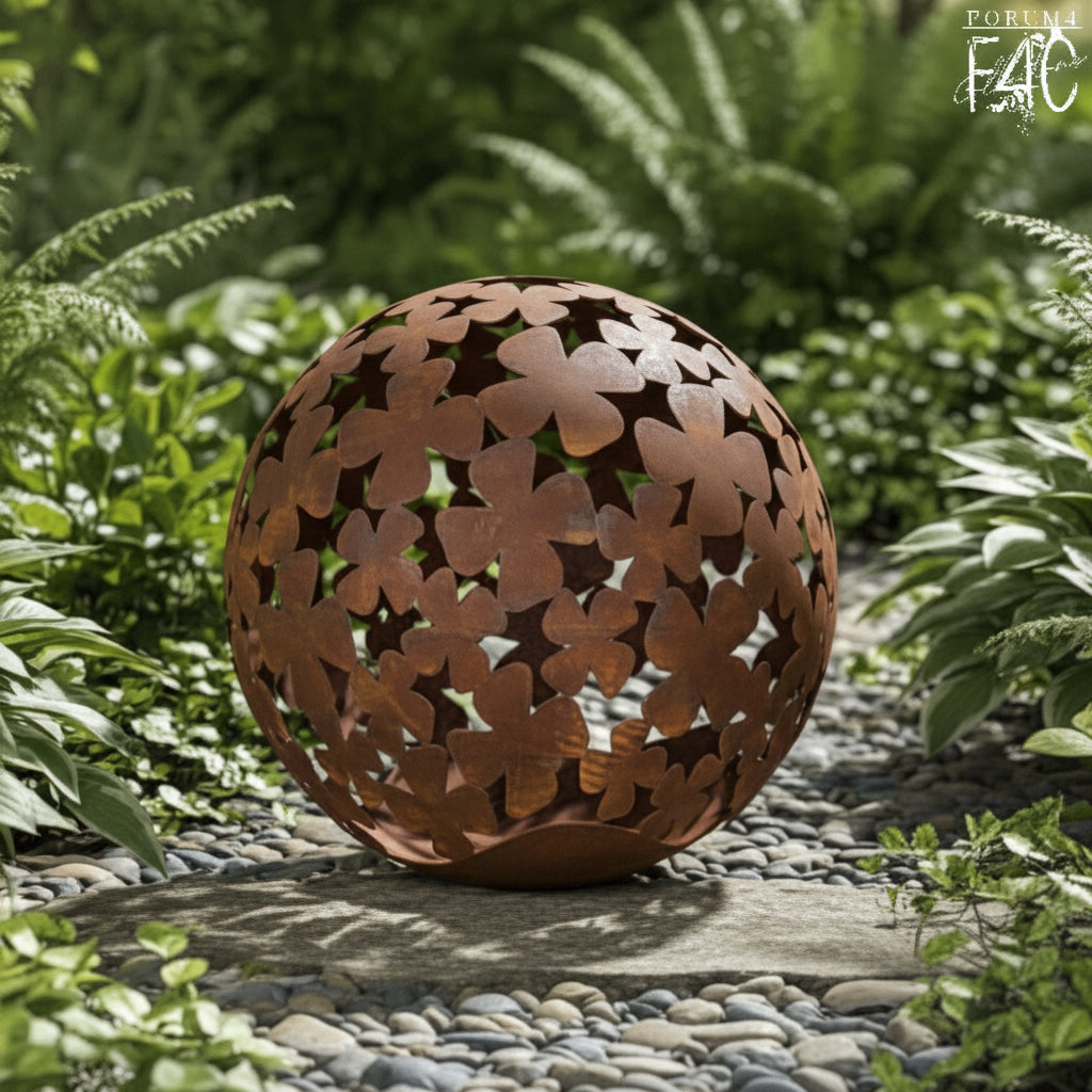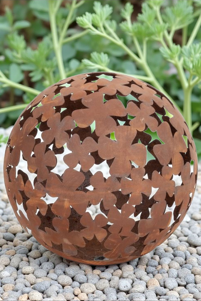 FLORAL RUSTY CORTEN METAL GARDEN BALL 40CM