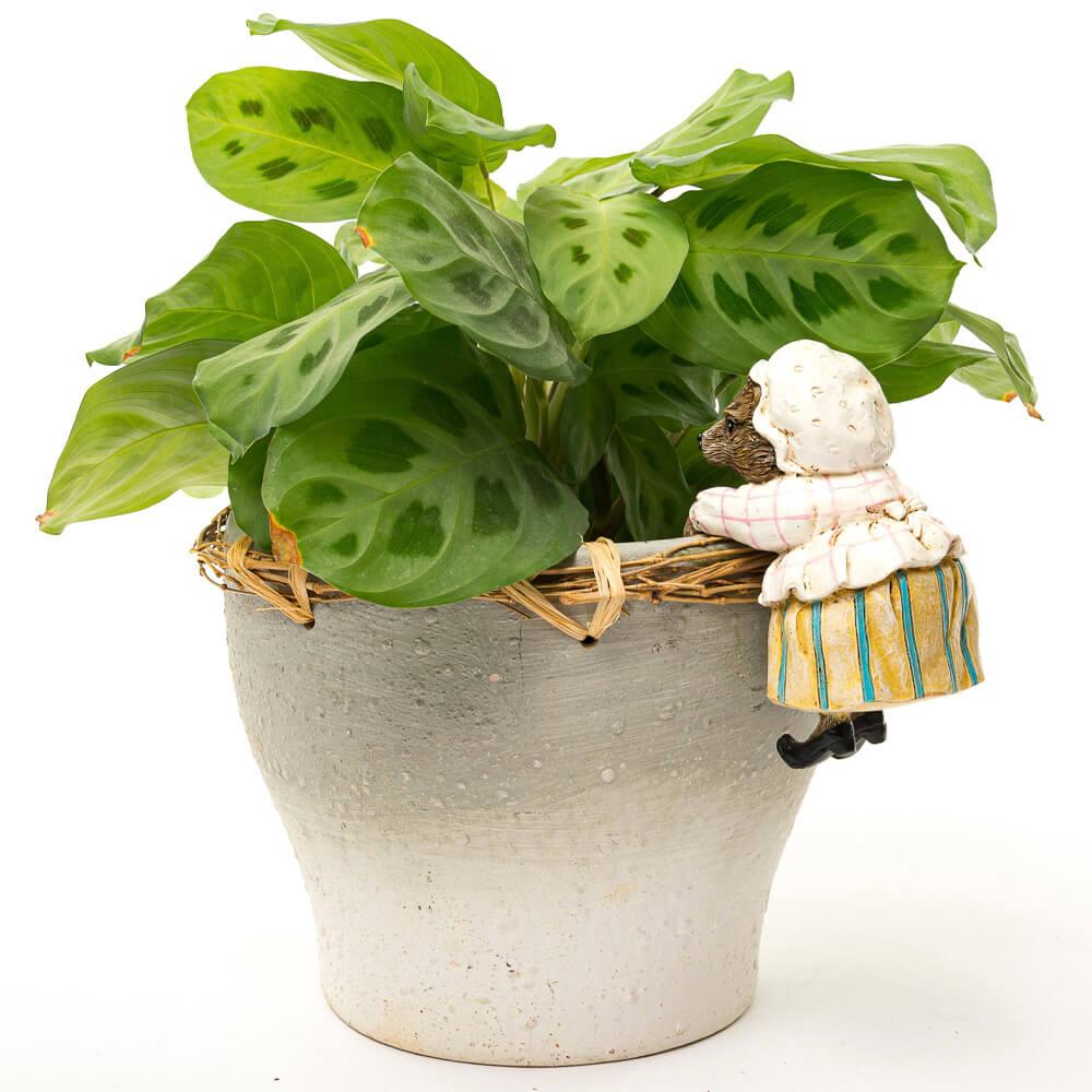 Add a touch of glamour and character to your pot or planter with this beautiful Beatrix Potter Mrs. Tiggy Winkle Pot Buddy. Made from a durable polyresin and crushed stone based material, these cane companions are frost proof, UV resistant and hand-painted using lead-free products – meaning you can leave it outside all year around in cold or hot temperatures. This pot buddy is versatile, it can be used indoors on vases, mirrors, lamps, fruit bowls or anything with a 'lip edge' that she can hang on to! Each pot buddy is beautifully gift packaged using 100% recycled kraft card materials. Pot Buddies make ideal gifts for any occasions, Beatrix Potter fans, animal lovers and those with a green thumb will love this piece.