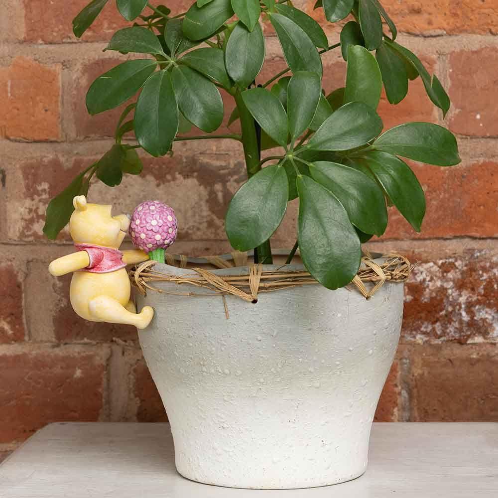 Disney fans will adore this Winnie holding flowers hanging Pot Buddy! With a hand-painted rustic finish, reminiscent of E.H. Shepard’s classic illustrations in the original Winnie the Pooh books, and crafted from polyresin and stone, this adorable Pot Buddy will bring character to pots and vases, both indoors and outside in the garden. Pot buddies are frost proof, UV resistant and hand-painted using lead-free products – meaning you can leave it outside all year around in cold or hot temperatures. Each Disney pot buddy is beautifully gift packaged using 100% recycled kraft card materials. Winnie the Pooh Pot Buddies make ideal gifts for many ages and occasions and are sure to bring character and charm to the garden with a touch of Disney magic!