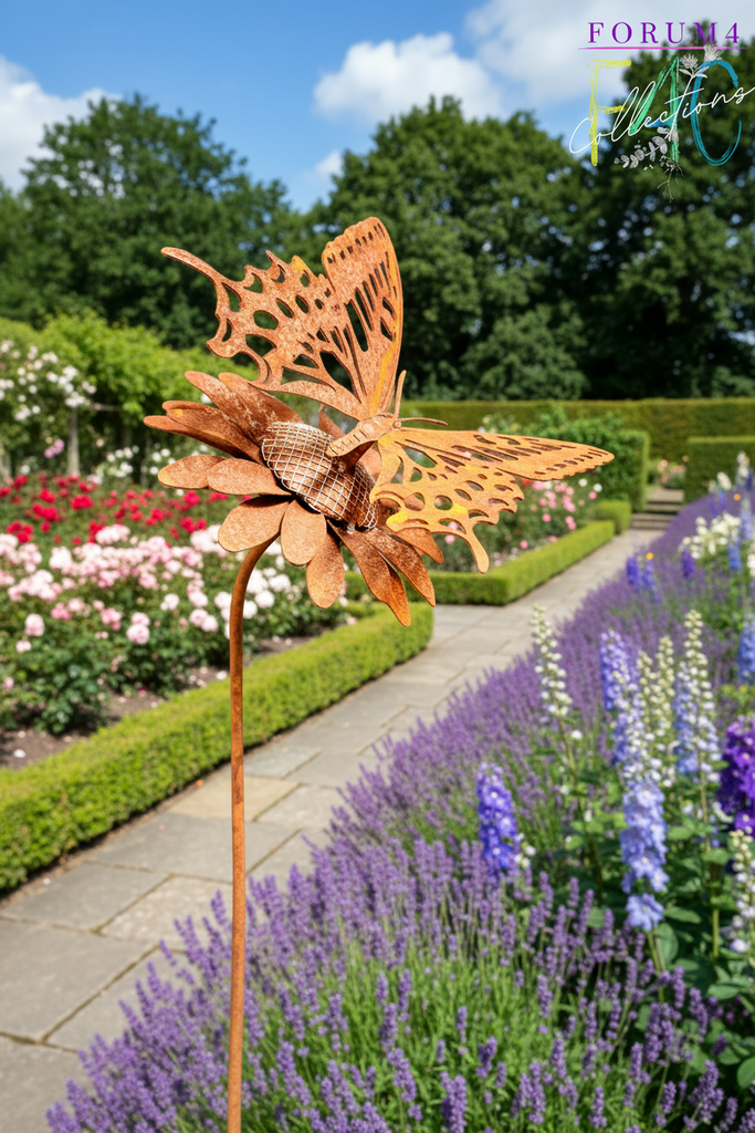 RUSTY BUTTERFLY ON FLOWER GARDEN STAKE