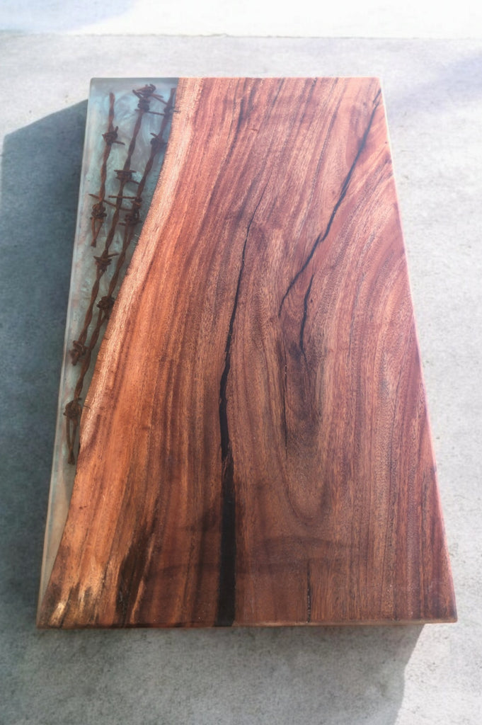 RUSTIC TIMBER RESIN BOARD - SAGE GREEN BARBED WIRE - Australian Made