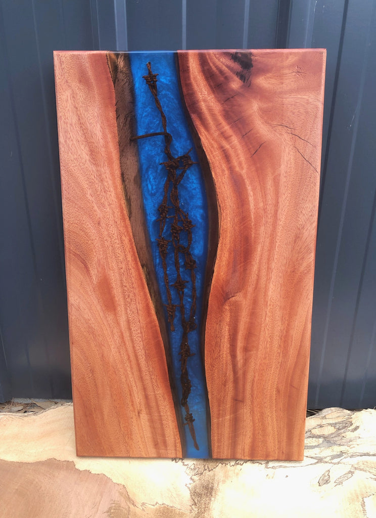 RUSTIC TIMBER RESIN BOARD - BLUE BARBED WIRE - Australian Made