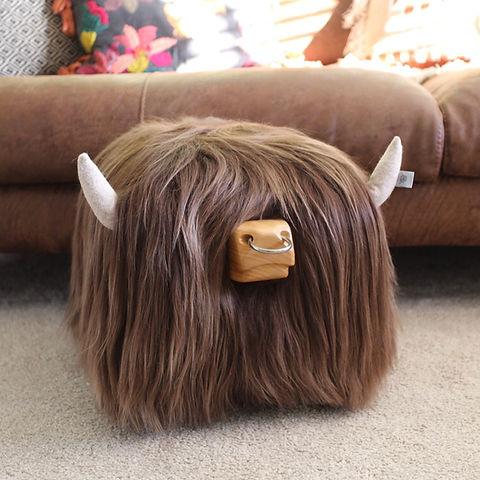 HIGHLAND BULL GENUINE FOOT STOOL - ASH