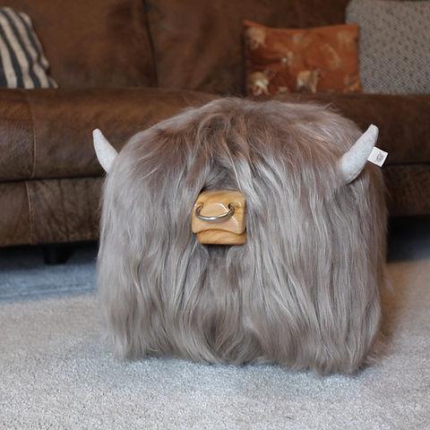 HIGHLAND BULL GENUINE FOOT STOOL - TAUPE