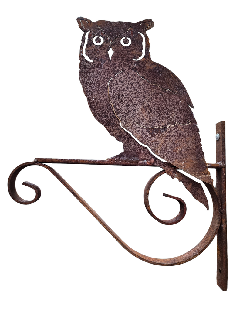 A rusty garden wall hook with an owl design would be suitable for outdoor use, as it can add a decorative and functional element to your garden or outdoor space. It can be used to hang garden tools, planters, watering cans, or even outdoor decor such as wind chimes or lanterns.