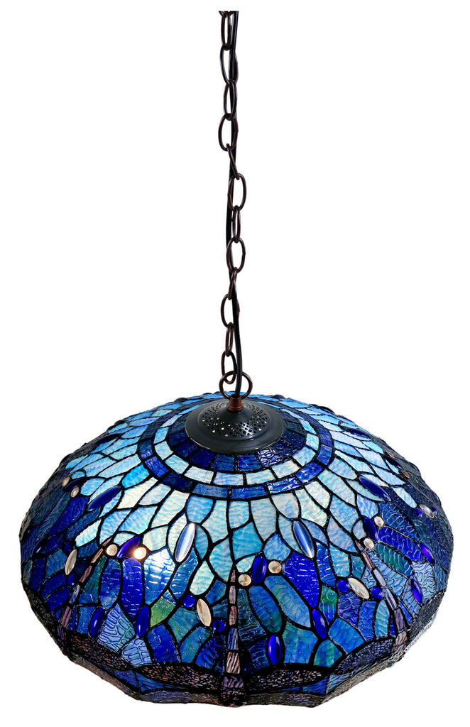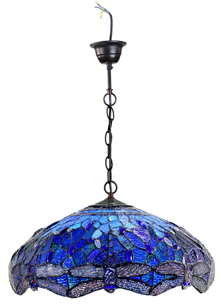 Blue Dragonfly Hanging Lamp - Mosaic Stained Glass - Leadlight