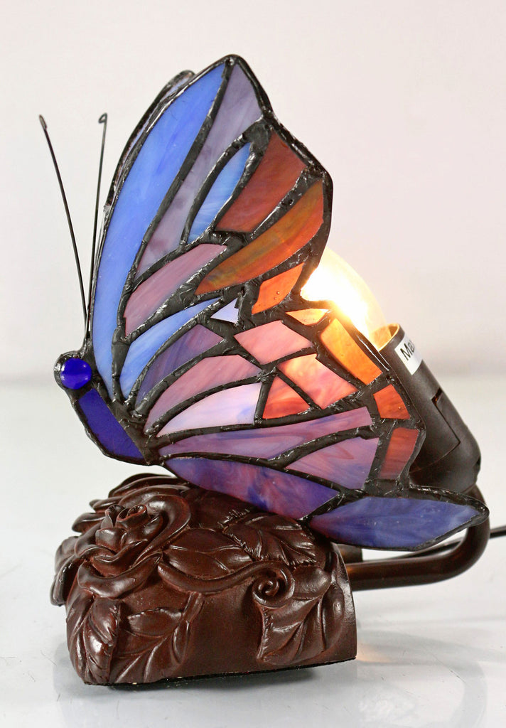 Butterfly Lamp Purple - Mosaic Stained Glass - Leadlight
