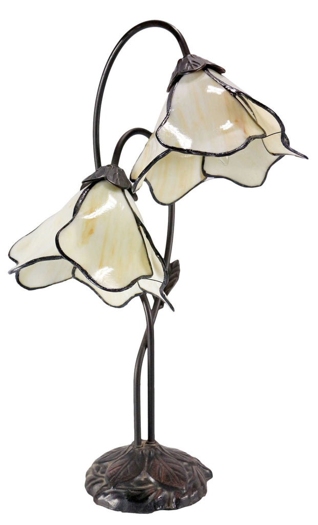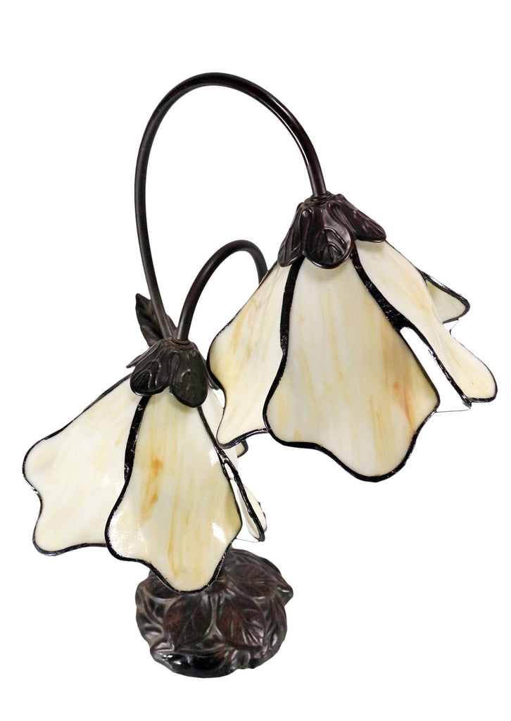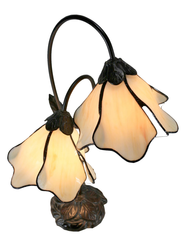 Twin Lotus Flowers Lamp - Beige - Mosaic Stained Glass - Leadlight