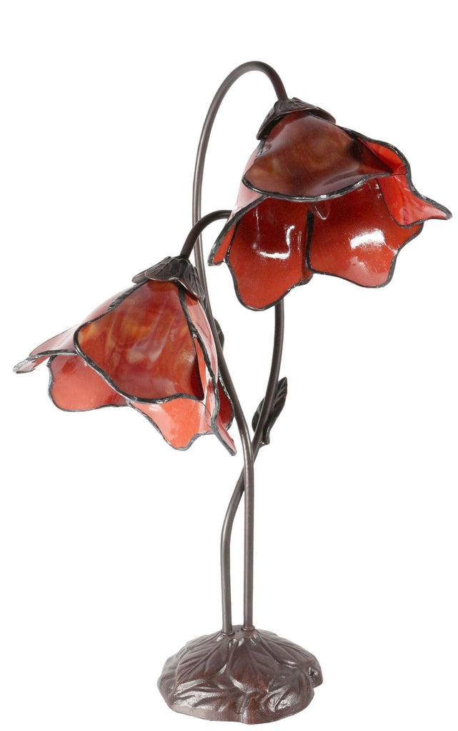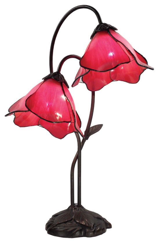 Twin Lotus Flowers Lamp - Red - Mosaic Stained Glass - Leadlight