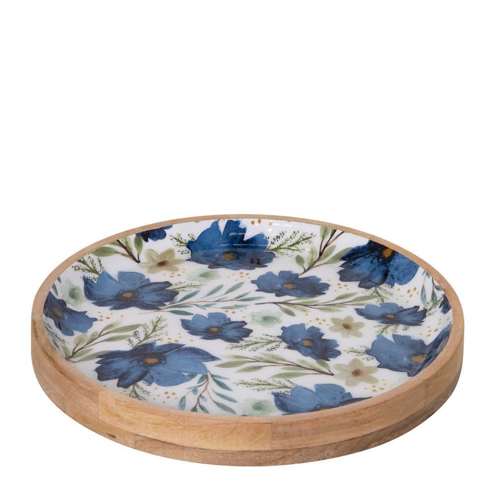 BLUE WILDFLOWER MANGOWOOD ENAMEL ROUND TRAY