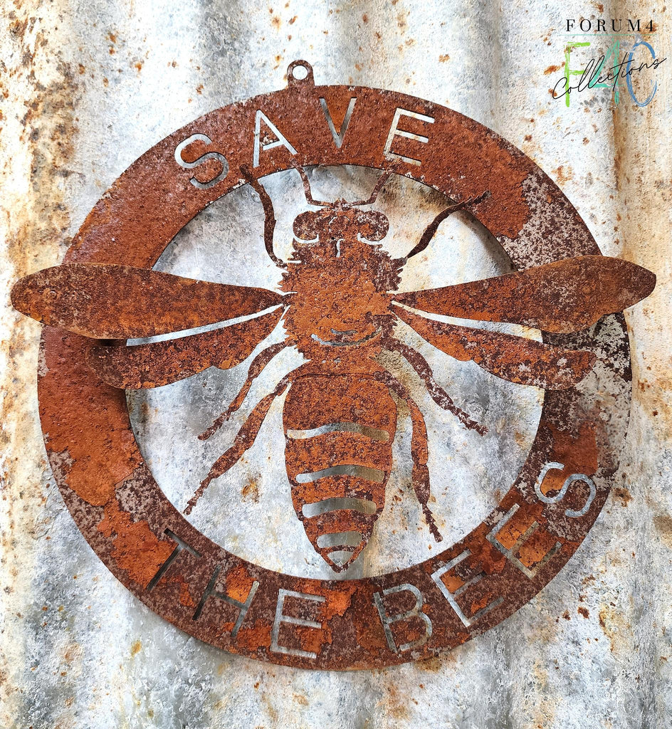 SAVE THE BEES 3D RUSTY METAL WALL DECOR