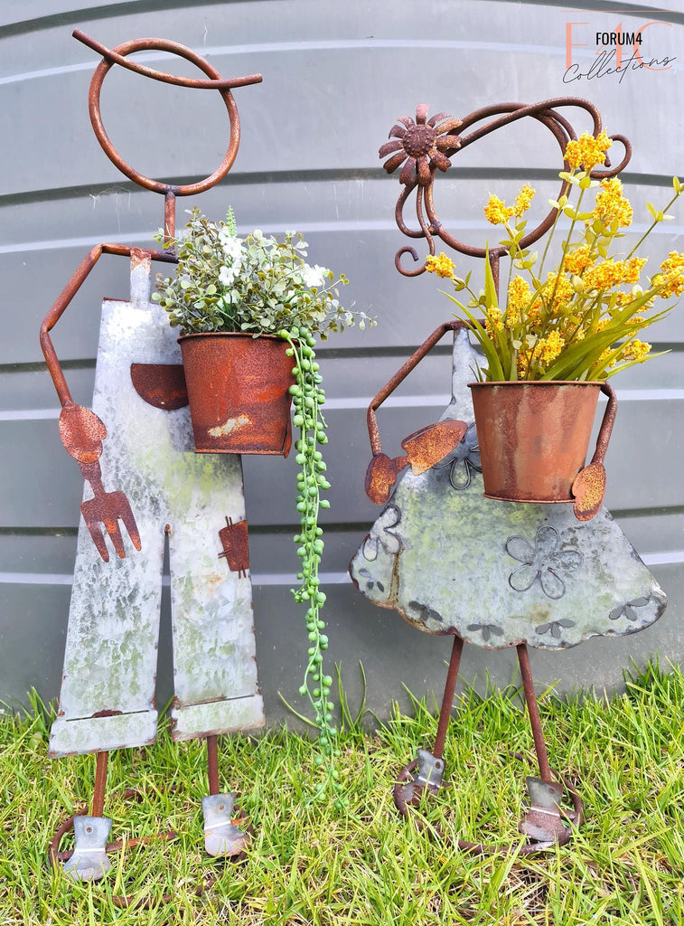 Add a touch of rustic charm to your outdoor space with our 2pc Farm Kid planters! These planters feature a vintage design that will complement any farmhouse or country-style decor. Made from pre-rusted and galvanized metal, they offer a durable construction that will withstand the elements for years to come.