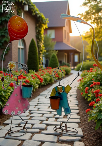 Add a playful touch to your garden or outdoor space with these charming metal sculptures of a boy and girl, each playfully posed and designed to hold your favorite plants. Crafted from durable metal, these sculptures are coated in bright, eye-catching colours that make them a fun and lively addition to any setting. Their open-planter design makes them not only decorative but also functional, allowing you to display plants and flowers with a unique twist.