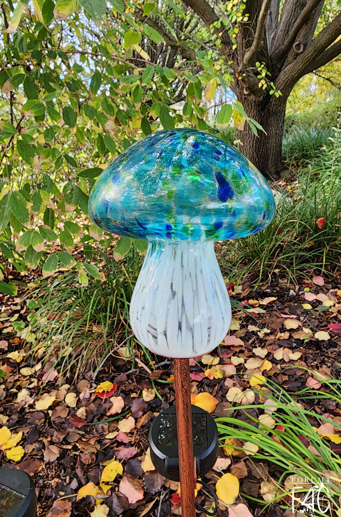 SOLAR GLASS MUSHROOM STAKE - AQUA GREEN
