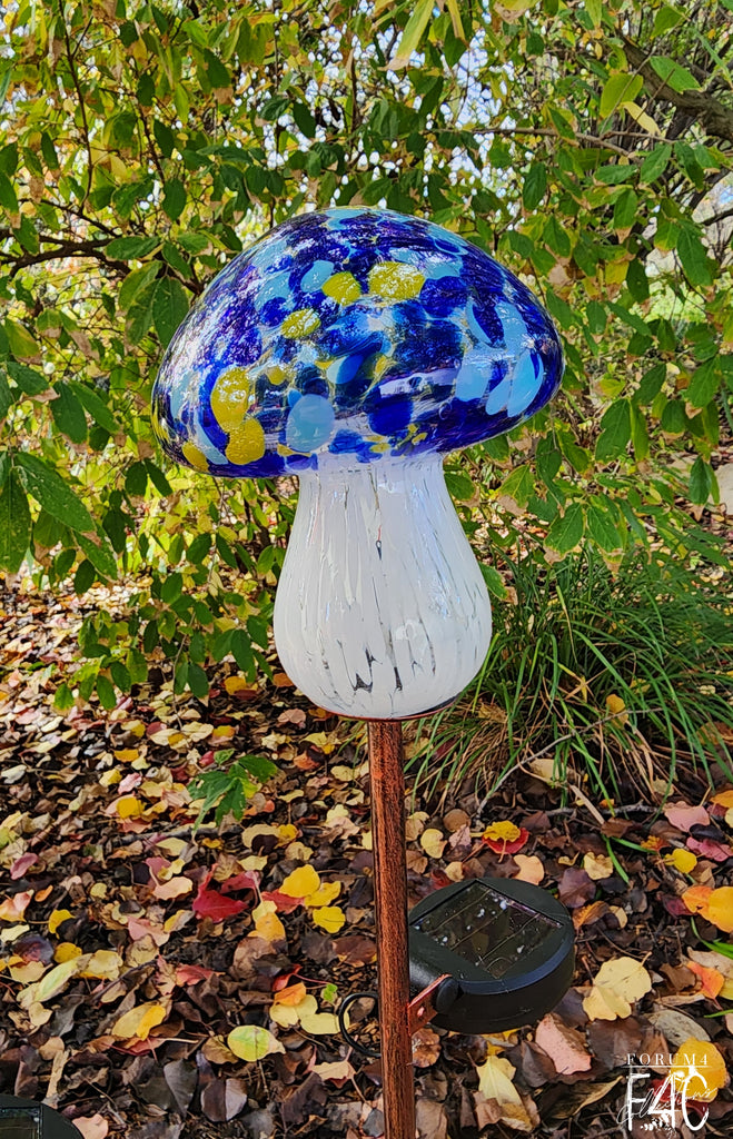 SOLAR GLASS MUSHROOM STAKE - BLUE