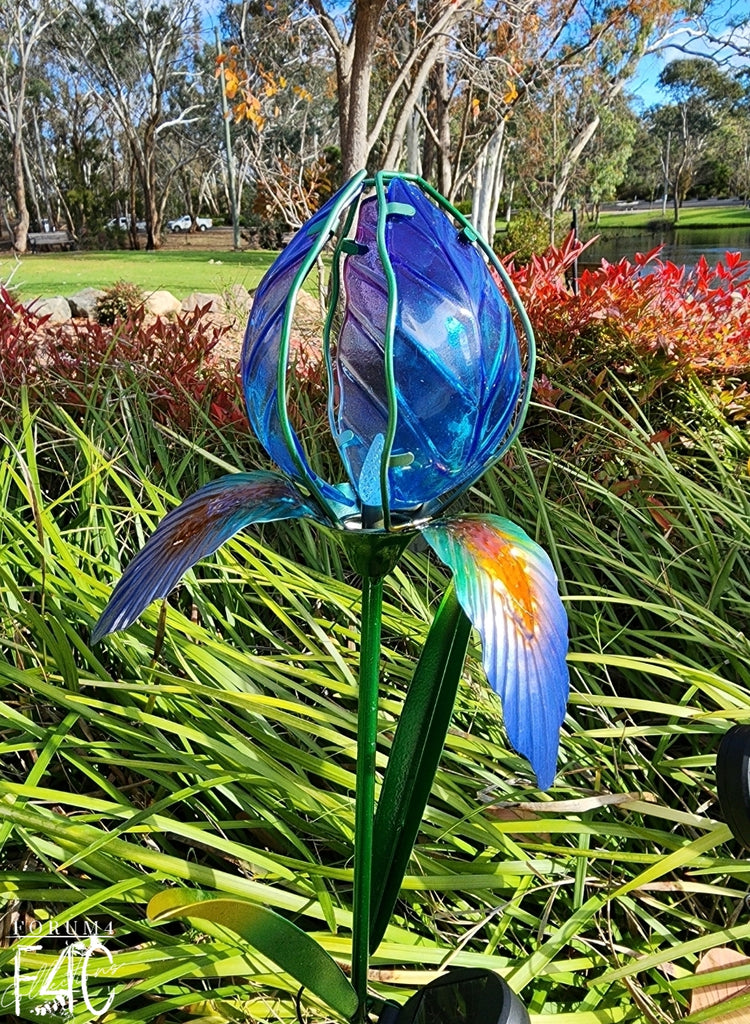 SOLAR IRIS FLOWER GARDEN STAKE - BLUE