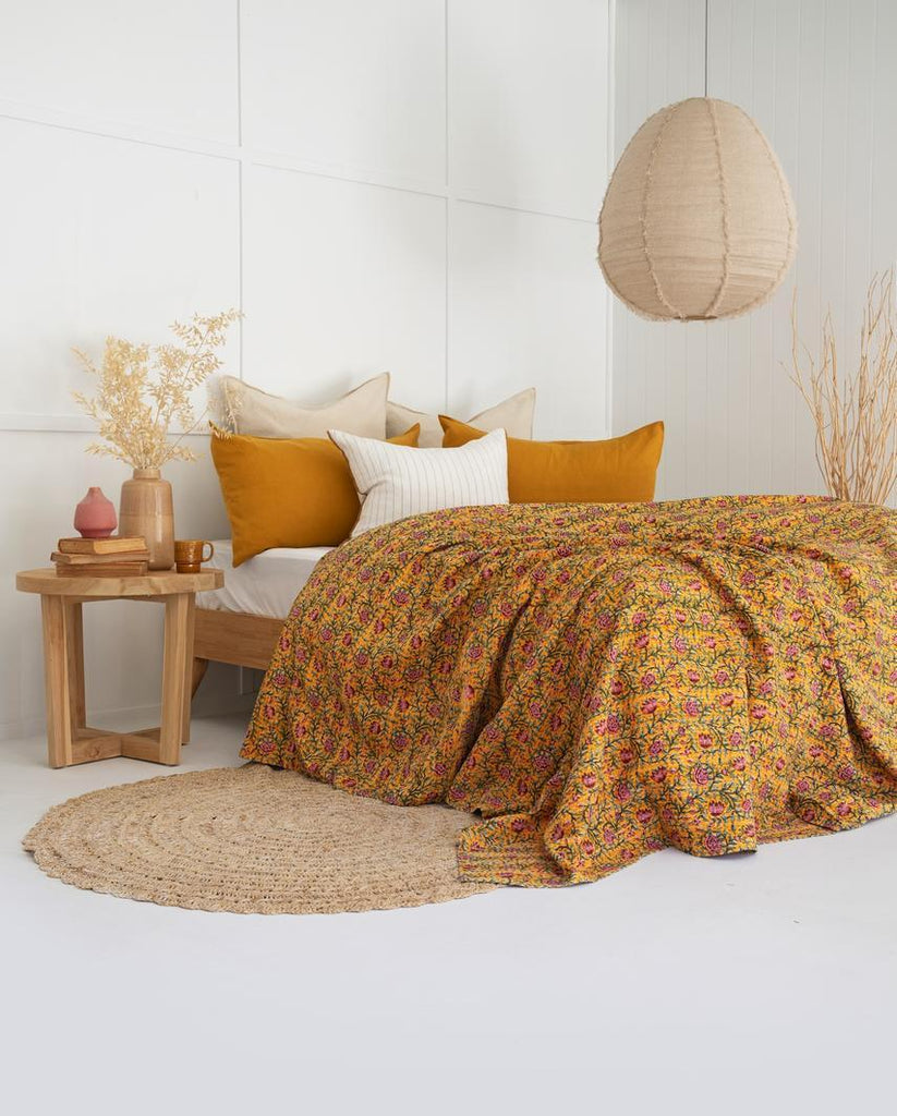 Whether you drape it over your bed, couch, or favourite chair, it’s sure to make a statement and breathe new life into your decor. Bright colours add vibrancy to your living space / bedroom. Buy a few to add a kaleidoscope of color to any room. Purchasing a Fair trade Kantha Quilts creates employment opportunities and a sustainable life for the women artisans and their families.