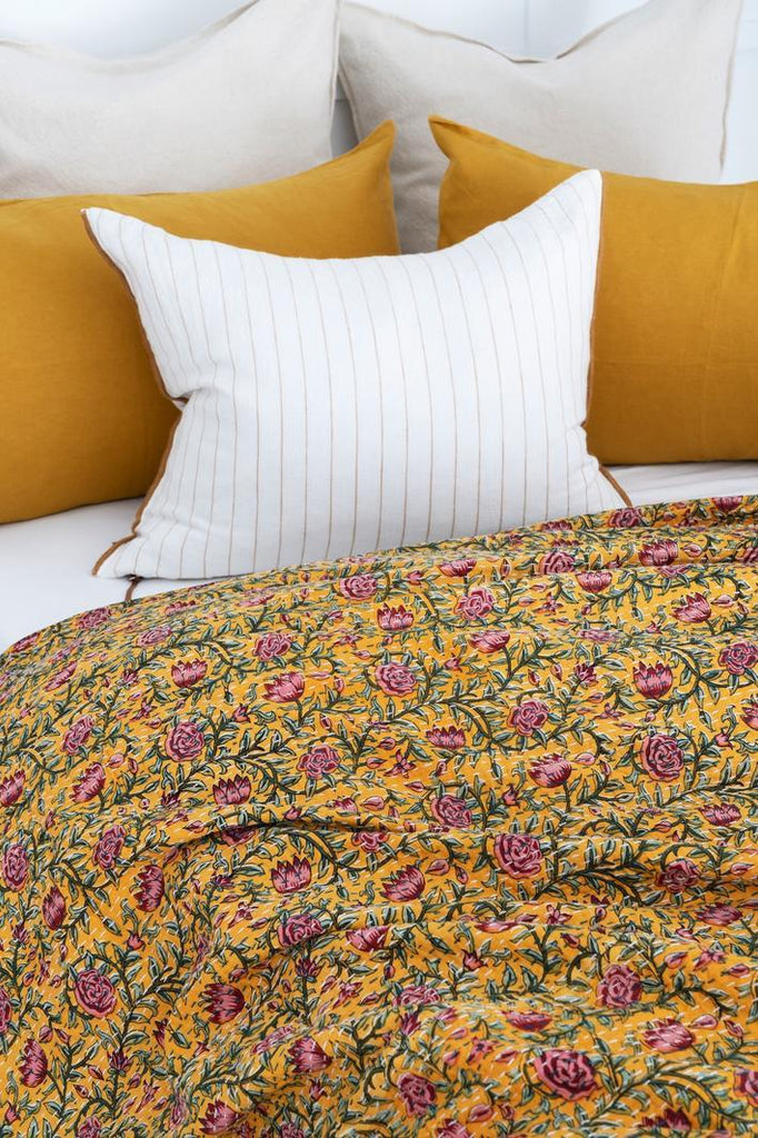 Hand crafted softly quilted handmade by artisans in India. The entire quilt is painstakingly hand embroidered with end number of straight running stitches to create a unique product, one of a kind (No two are alike), thus it’s a perfect GIFT too (Wedding Gift). All these make them a Vintage Kantha Quilt.