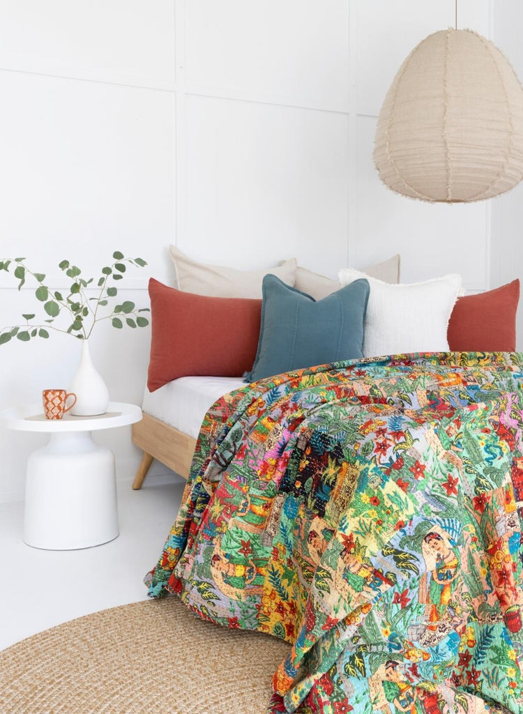 Add that touch of colour to your lounge/bedroom with this Vintage Hand Made Kantha Bed Spread/ Throw