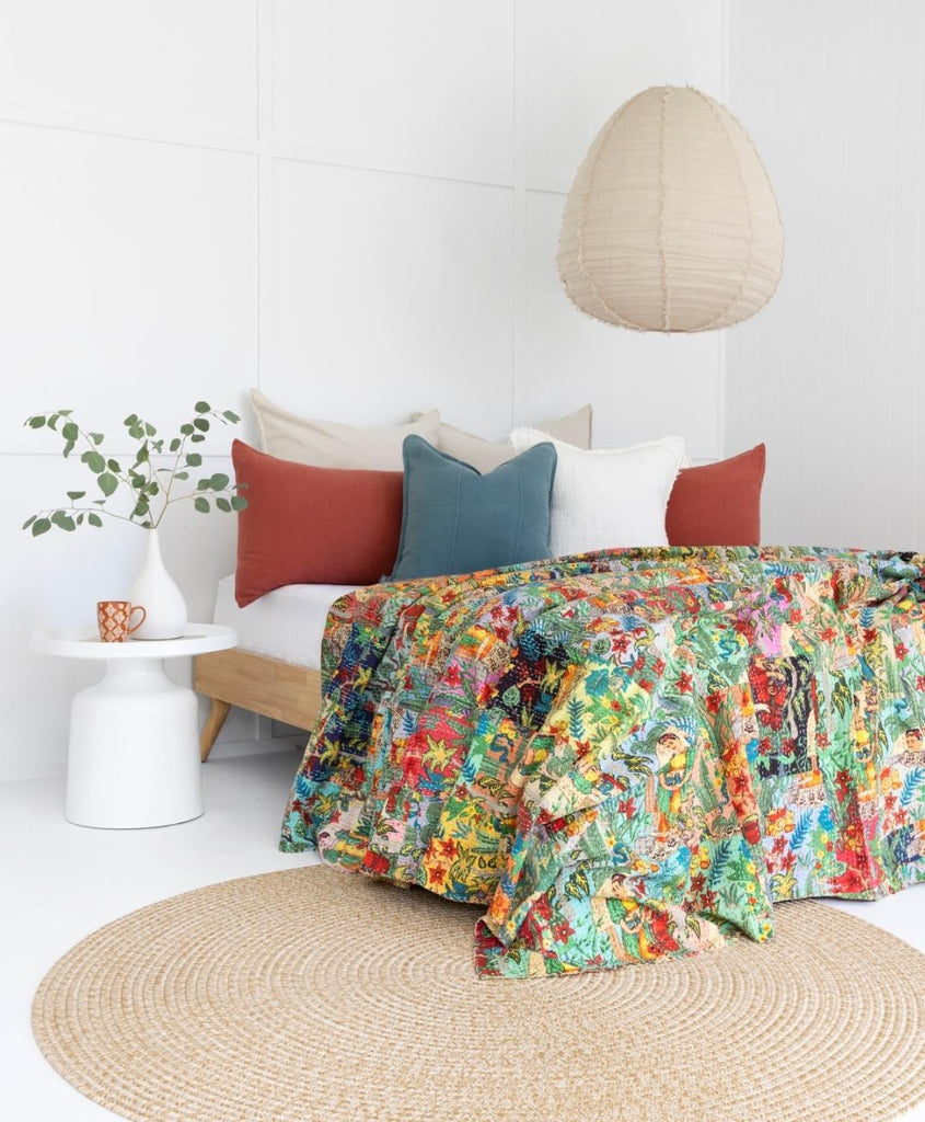 Whether you drape it over your bed, couch, or favourite chair, it’s sure to make a statement and breathe new life into your decor. Bright colours add vibrancy to your living space / bedroom. Buy a few to add a kaleidoscope of color to any room. Purchasing a Fair trade Kantha Quilts creates employment opportunities and a sustainable life for the women artisans and their families.